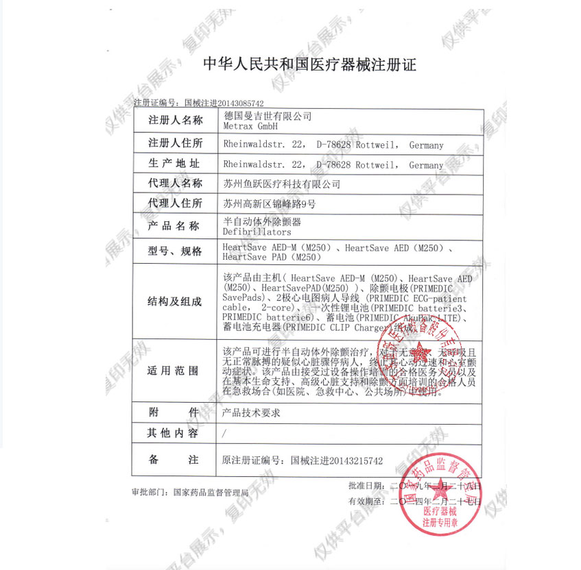 - 除颤电极:无极化电极,保存期限:2.5年,导线长度:1.5米.