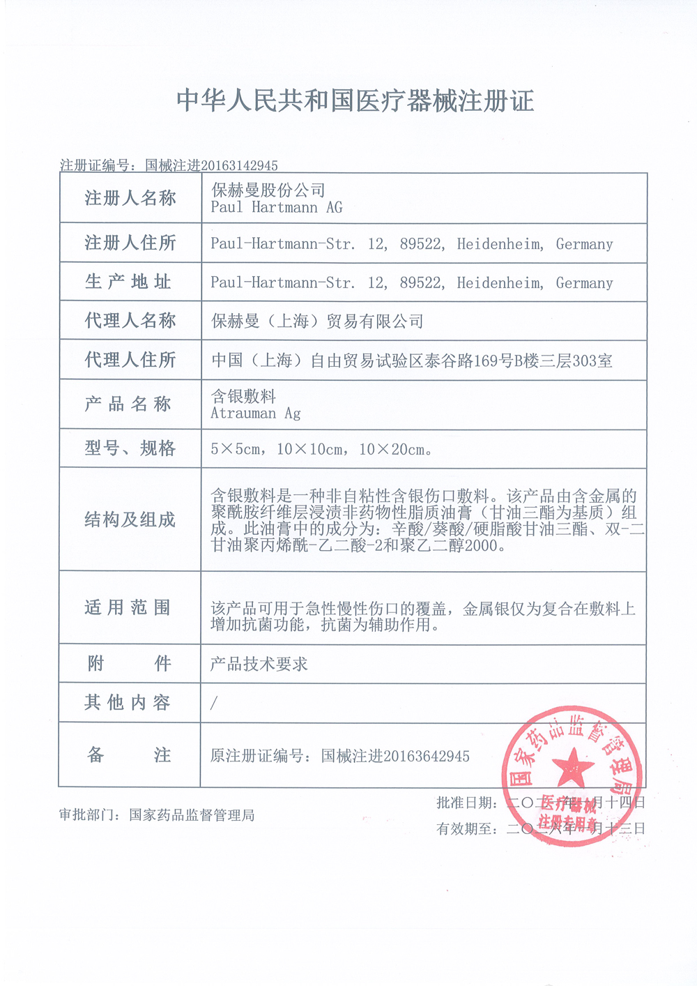 - 产品注册证号:国械注进20163642945