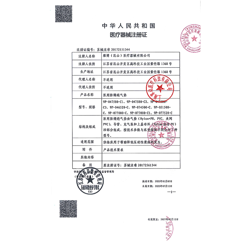 - 产品注册证号:苏械注准20172151344