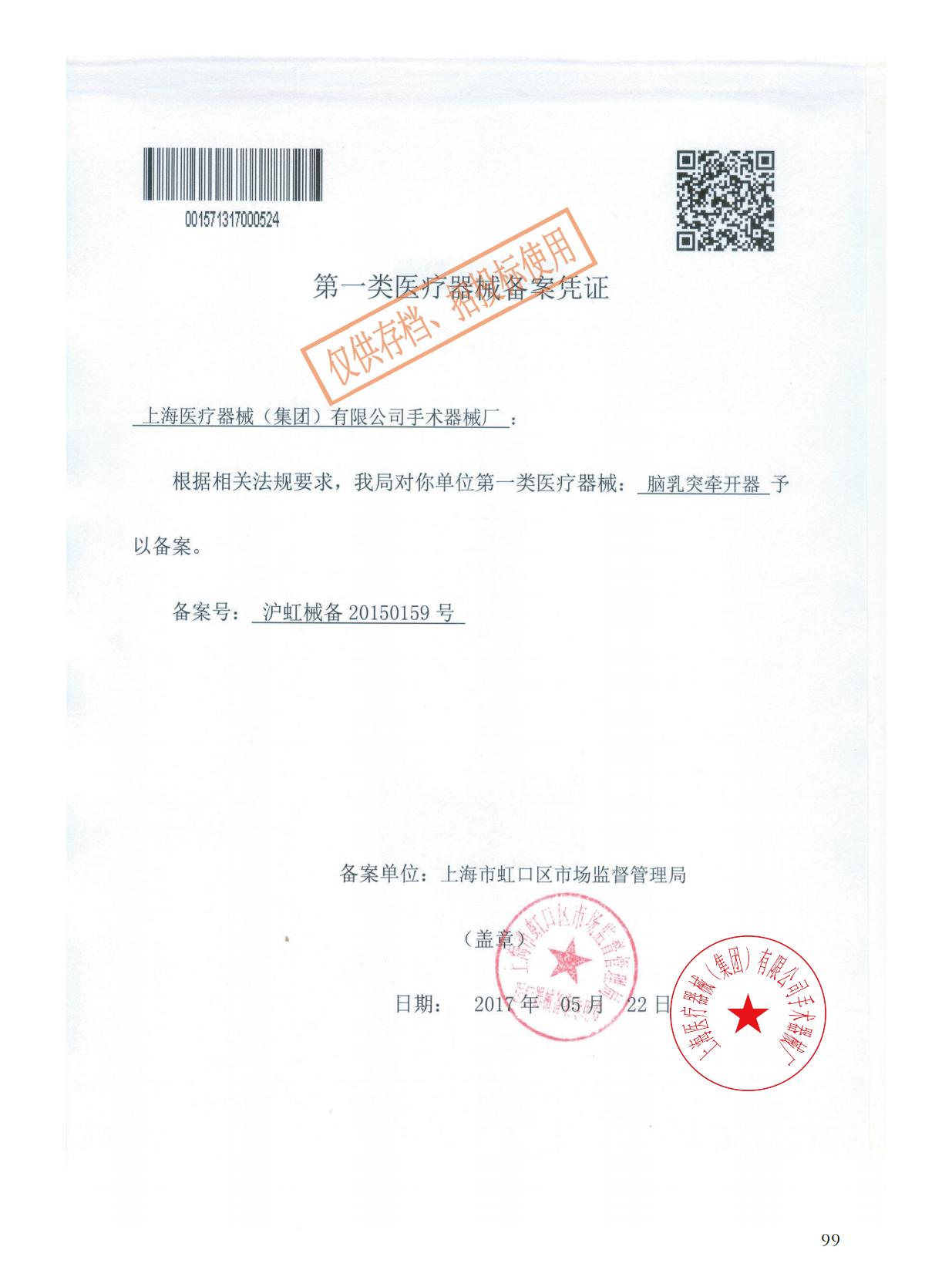 - 产品注册证号:沪虹械备20150159号