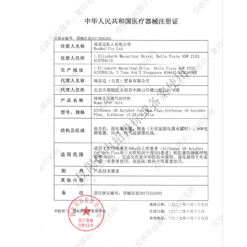 - 商品名称:Resmed 瑞思迈呼吸机 S10